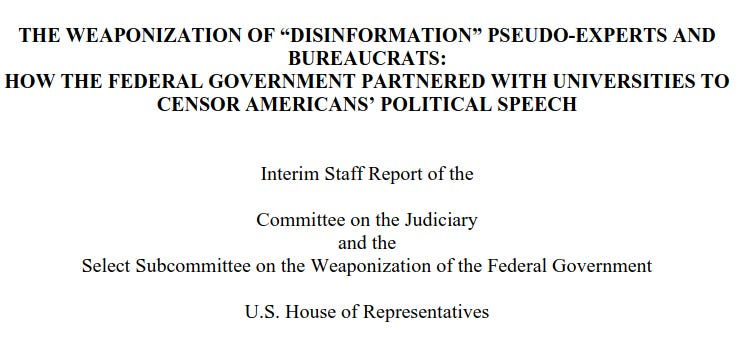 …a consortium of “disinformation” academics led by Stanford University’s Stanford Internet Observatory (SIO) that worked directly with the Department of Homeland Security and the Global Engagement Center, a multi-agency entity housed within the State Department, to monitor and censor Americans’ online speech in advance of the 2020 presidential election…the EIP provided a way for the federal government to launder its censorship activities in hopes of bypassing both the First Amendment and public scrutiny.
