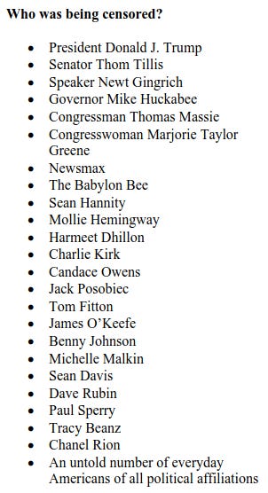 The previous list of censored individuals and organizations clearly leans conservative, but this blatant disregard of the First Amendment should concern all Americans.
